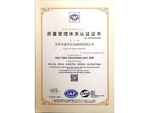 質(zhì)量管理體系認證證書
